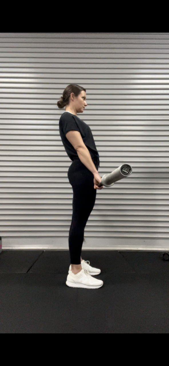 4. Arching back at the top – What I mean by this is when you reach the top, you are leaning backwards instead of standing tall. This will cause a shearing force in the lumbar spine. Once you have stood tall and locked the knees out, there is no reason to lean backwards. This will only put unnecessary loan on the lumbar spine. I like people to feel like they are standing tall at the top of the lift while keeping the core tight, and this should correct the arching back.